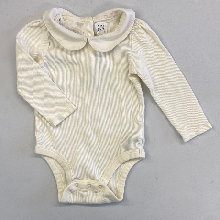 Cream ribbed long-sleeved bodysuit with Peter Pan collar