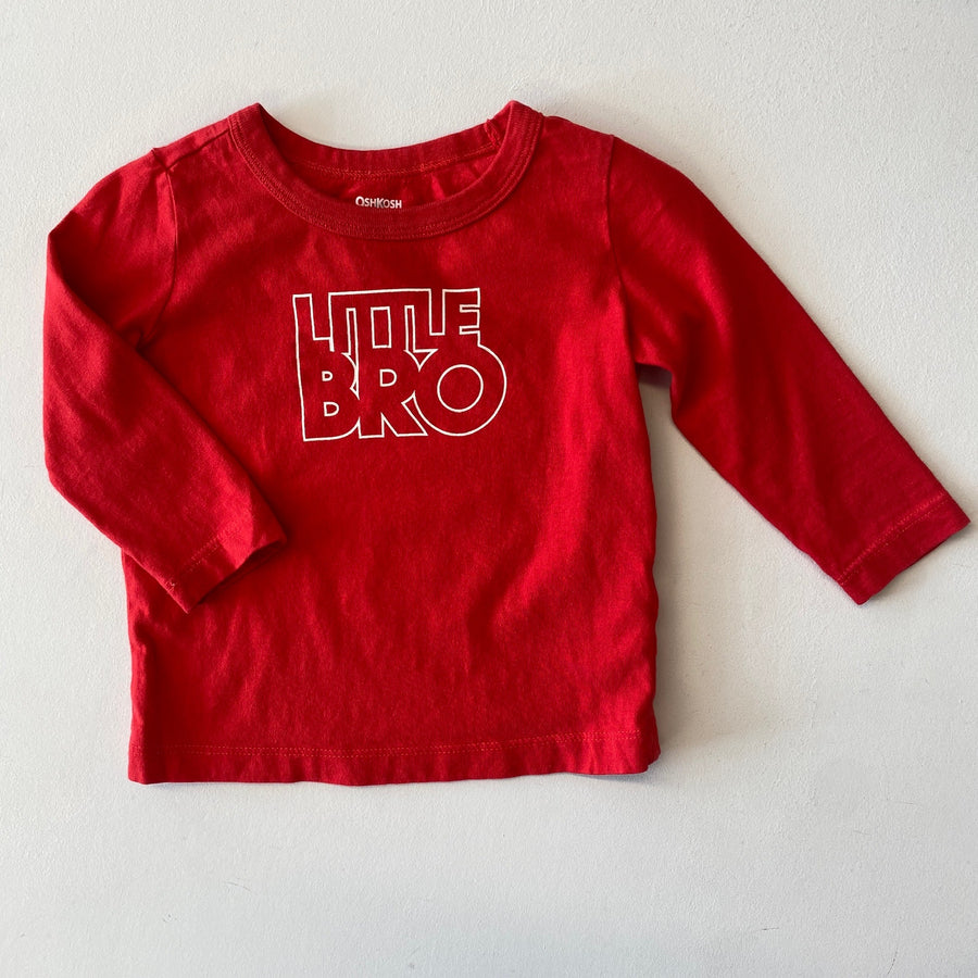Long-sleeved red t-shirt with 'Little Bro' motif